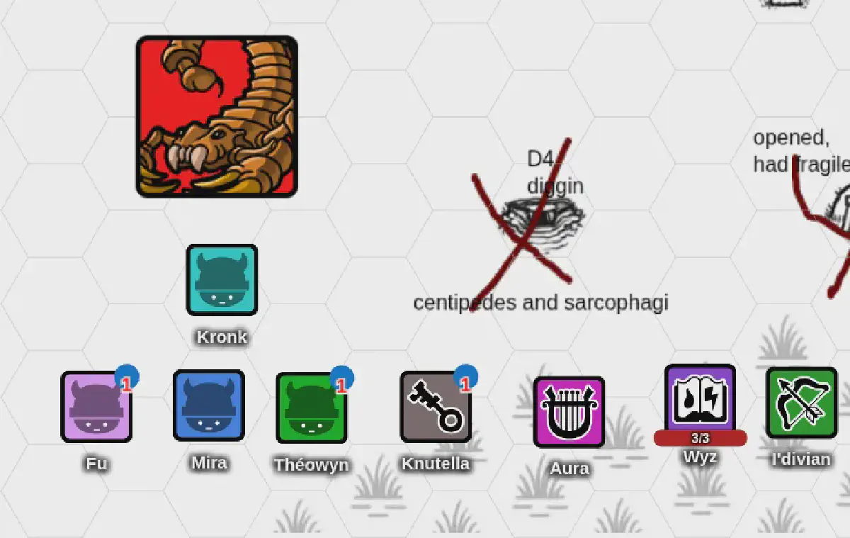 The scorpions somehow snuck up on the group while they dug like idiot dwarves. Notice that they did not sneak up on Wyz, oh no. Only the idiots got surprised. I was ready for the scorpions. A wise wizard is always prepared, and I is Wyz!