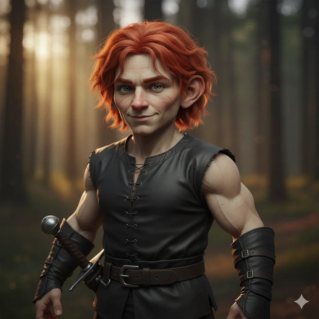 • Merrythane (human): A former tax evader who saved exactly 100 silver coins before staking his life in the barrowmaze. Wiry and sharp-featured, he assesses every situation like a ledger — calculating risk, weighing reward, and always keeping one eye on the exit. Handy with a sling.