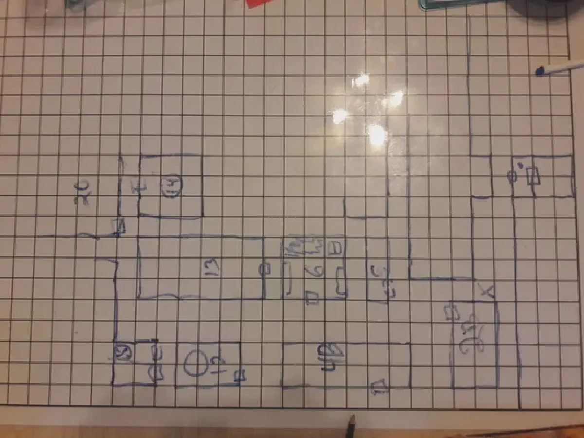 The party proceeded to room 6, which had no occupants but did contain a desk and some papers. After careful examination, the party determined that one of the papers was an elaborate seating chart. They stole a leather pouch with 10 gp and 50 sp.